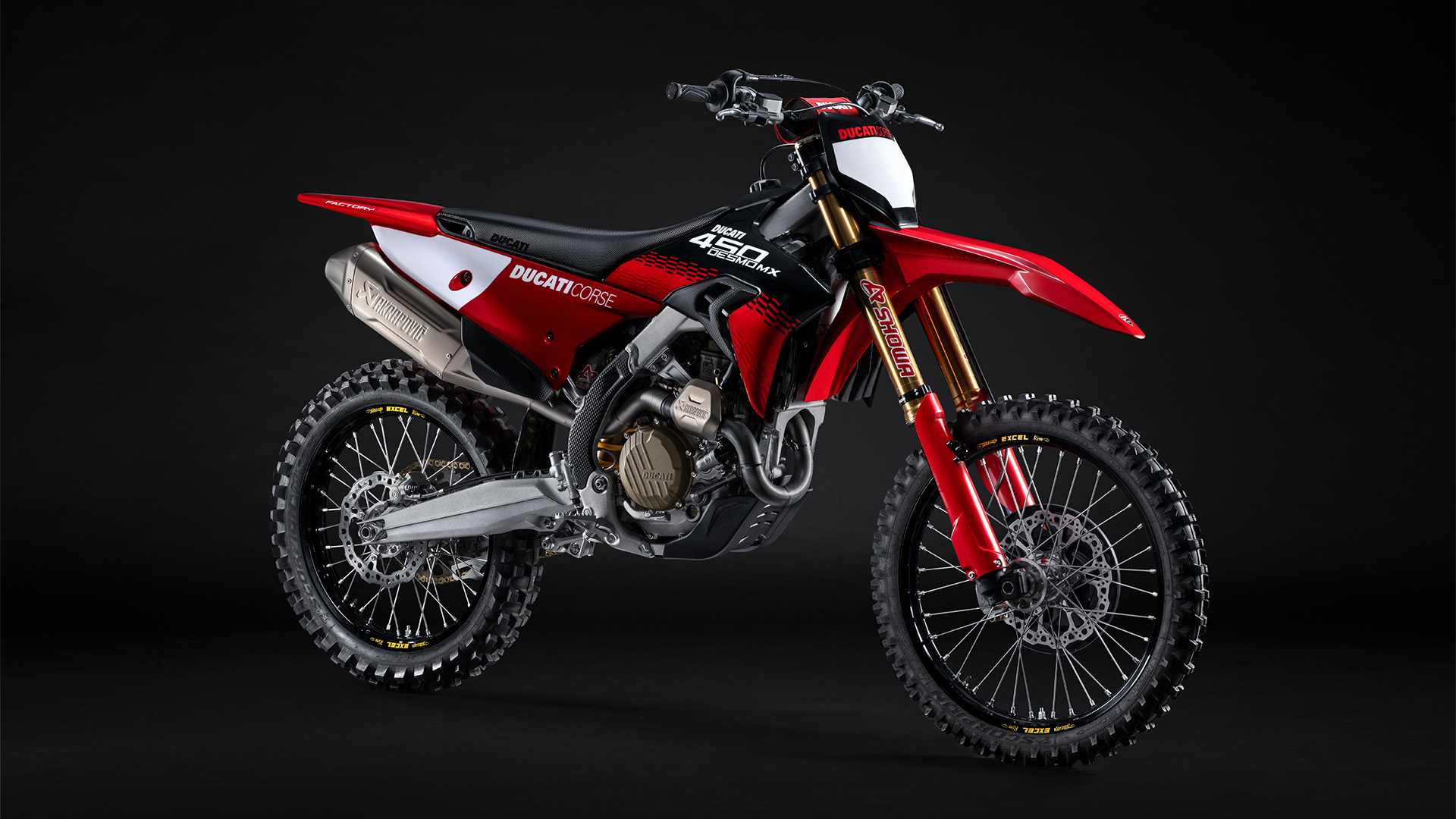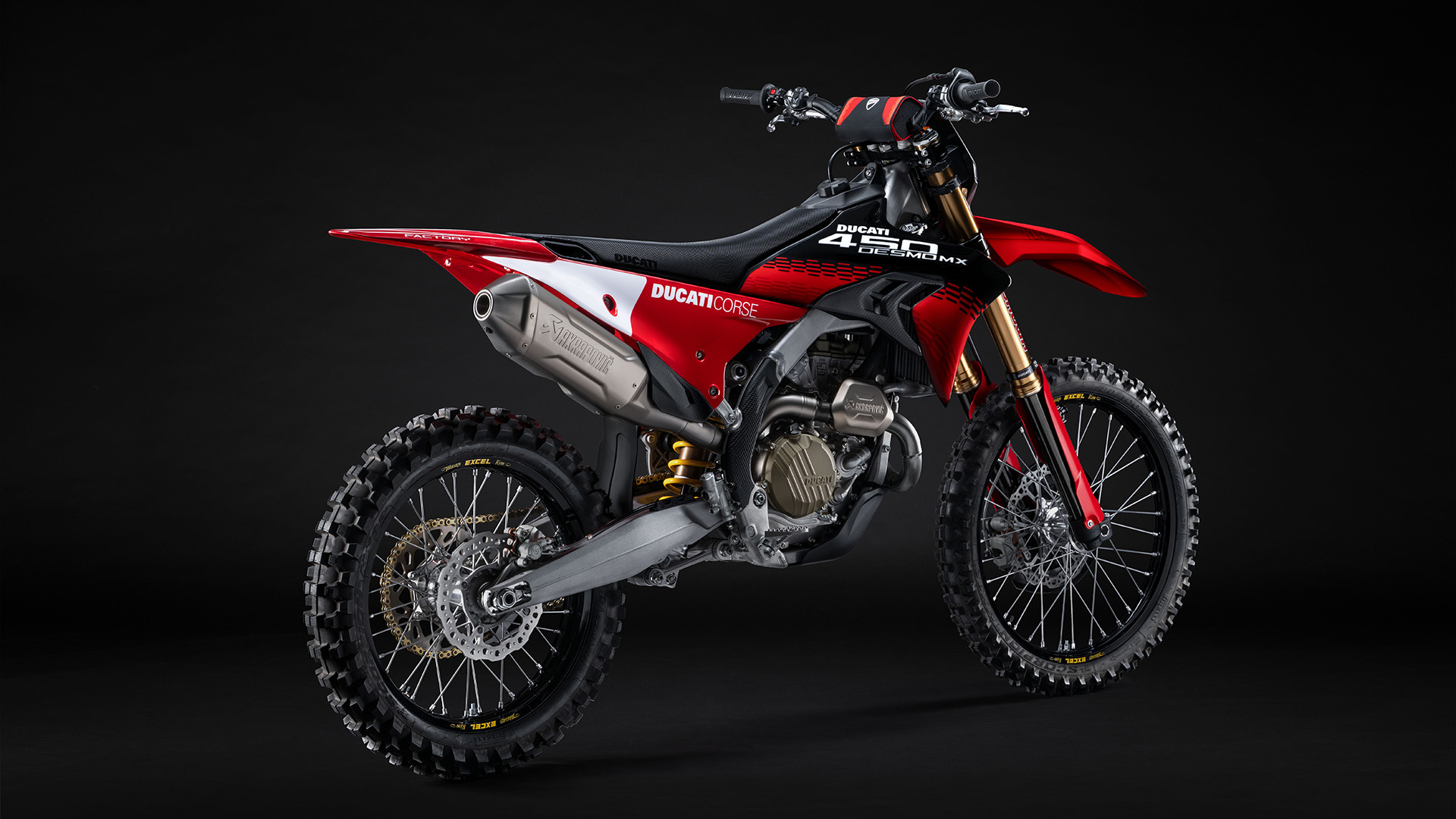 Rok po debiucie Desmo450 MX, Ducati prezentuje wersję Factory, przeznaczoną dla motocyklistów poszukujących maszyny gotowej do wyścigów, wyposażonej we wszystko, co niezbędne do rywalizacji. Desmo450 MX, dzięki wysokiej klasy komponentom wyścigowym, jest jeszcze bardziej wydajny i lżejszy niż wersja standardowa (104 kg zamiast 104,8 kg).
