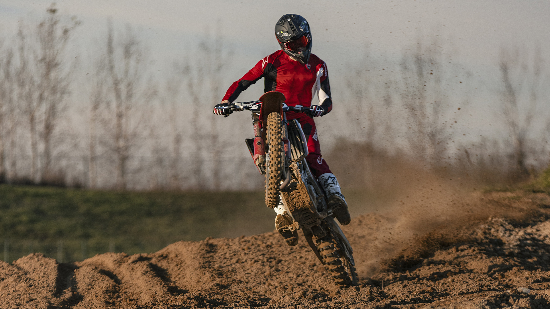 Ducati Desmo450 MX Factory jest jeszcze piękniejsze dzięki specjalnemu malowaniu Ducati Corse, które nawiązuje do oficjalnych motocykli biorących udział w Mistrzostwach Świata MXGP.