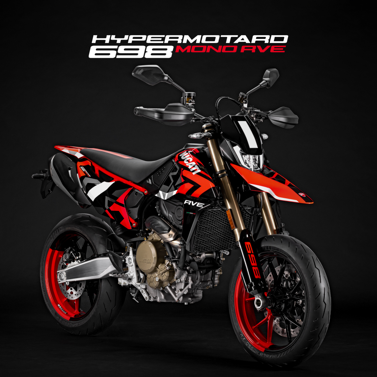Hypermotard 698 Mono to motocykl, który zmienia zasady gry. Miejskie ulice zamienia w place zabaw, a tory – w niekończącą się radość schodzenia na kolano w zakrętach. Na jego sukces składają się sportowa stylistyka Supermotarda i jednostka napędowa Superquadro Mono, która stanowi nowy punkt odniesienia w kategorii osiągów drogowych silników jednocylindrowych i generuje prędkości obrotowe, które dotychczas były zarezerwowane wyłącznie dla silników wyścigowych. Standardowa wersja drogowa rozwija 77,5 KM, a po zamontowaniu akcesoryjnego, wyścigowego wydechu Termignoni moc wzrasta do 84,5 KM. Na straży bezpieczeństwa i dobrej zabawy stoją zaawansowane, najbardziej kompletne w klasie systemy elektroniczne. Hypermotard 698 Mono dostępny jest w dwóch wariantach kolorystycznych: w czerwieni Ducati Red oraz malowaniu Graffiti w wersji RVE, która standardowo wyposażona jest w quickshifter.
